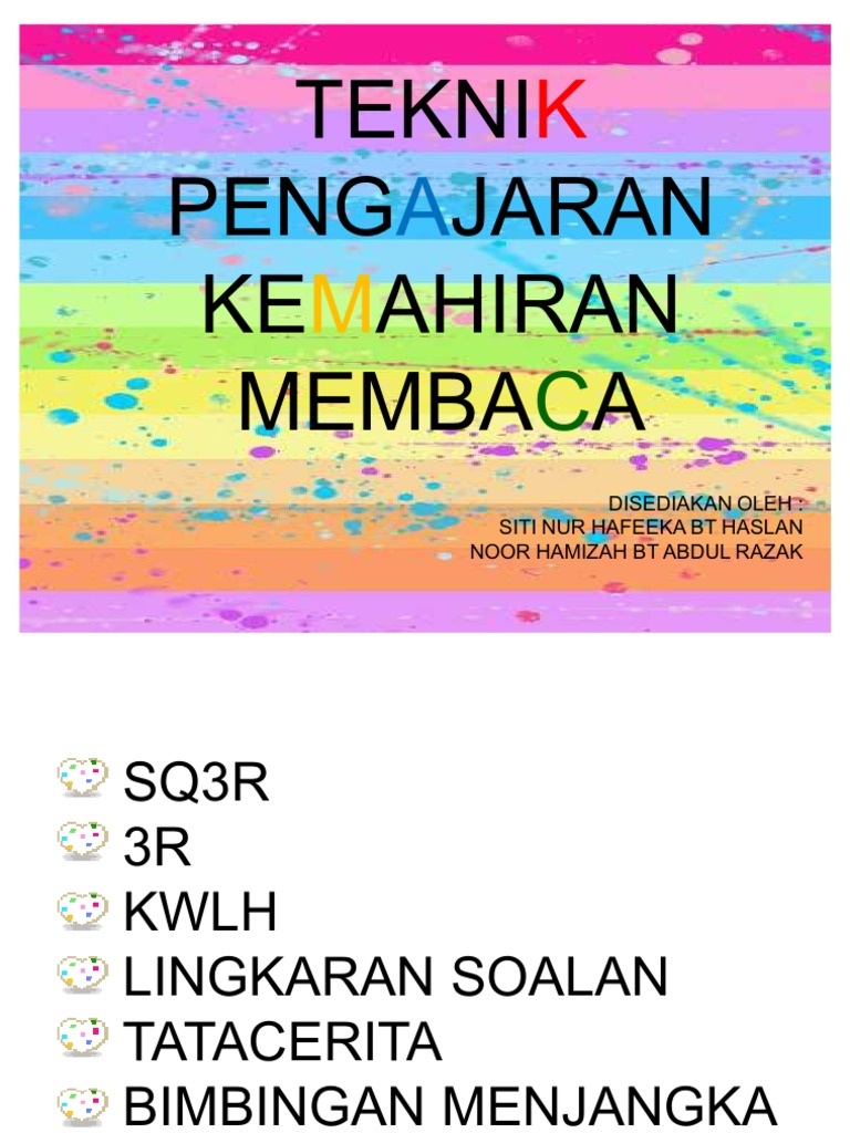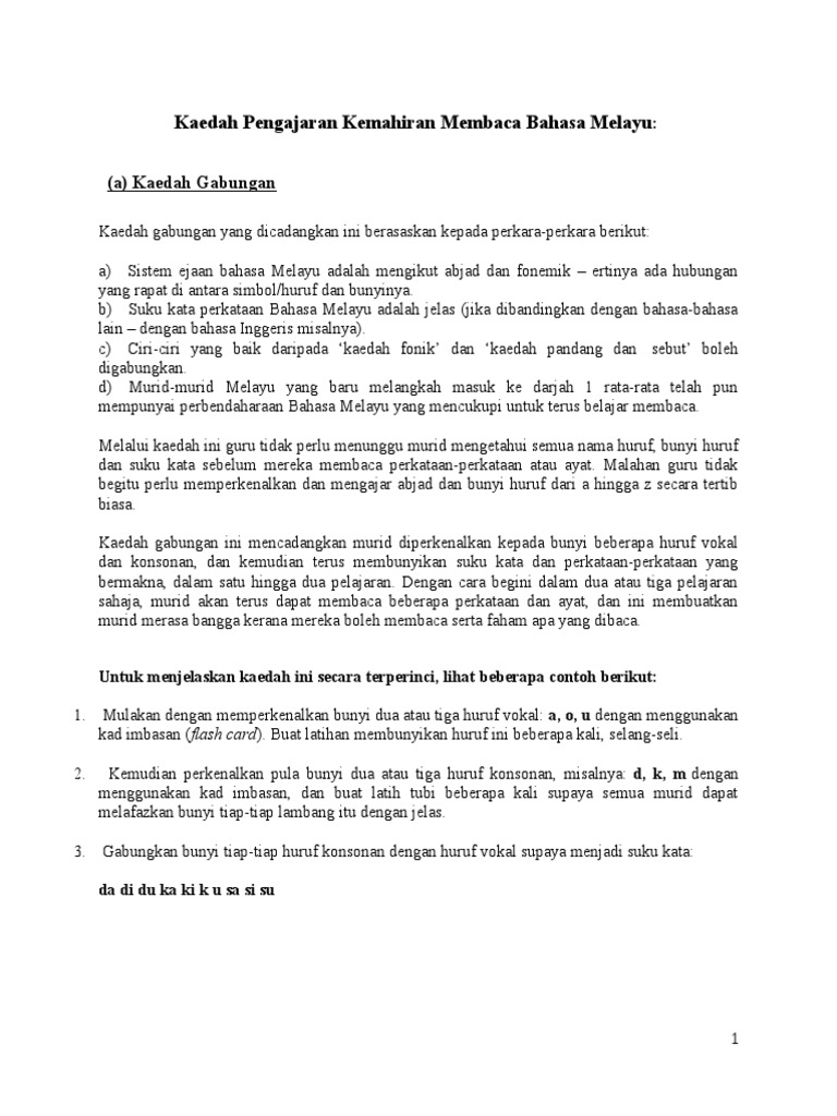 Hal ini amat penting untuk mereka mencapai kejayaan yang lebih cemerlang pada masa hadapan. Set lengkap kaedah ransangan membaca bersistematik (rmb) memperkenalkan satu teknik pengajaran dan pembelajaran yang disusun secara sistematik, kemas dan mudah ke arah penguasaan kemahiran membaca dan menulis. Suatu jenis teknik pengajaran dan pembelajaran yang melibatkan kemahiran guru mendemonstrasikan cara atau langkah yang melakukan rukun islam dan rukun iman. • ini semua dapat dilakukan dilakukan dengan dengan memberi penekanan kepada tinjauan •. Kaedah semulajadi kaedah pengajaran kemahiran membaca kaedah fonetik.