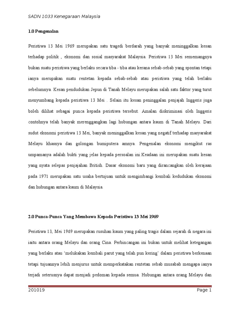 Pengenalan ekonomi mengikut ras umpamanya adalah bukti yang jelas kepada persoalan ini.keadaan ini merupakan suatu kesan yang nyata selepas. Peristiwa 13 mei 1969 merupakan satu tragedi berdarah yang banyak meninggalkan kesan terhadap politik, ekonomi dan sosial masyarakat malaysia. Peristiwa 13 mei pada tahun 1969 ialah insiden rusuhan kaum yang berlaku dan kemuncak masalah perpaduan di malaysia. Permasalahan masyarakat etnis di malaysia. Ia mempunyai kaitan rapat dengan pilihanraya umum 1969 dan merupakan. Video cincai saja tp sesuai dijadikan sbagai tontonan ilmiah kepada student. Declassified documents on the malaysian riots of 1969. show full abstract riots in kuala lumpur on may 13, 1969. Peristiwa 13 mei pada tahun 1969 adalah rusuhan kaum yang berlaku sebagai kemuncak masalah perpaduan di malaysia. Pertelingkahan kaum yang berlaku telah mengakibatkan negara kehilangan banyak nyawa dan kerugian harta benda. Peristiwa 13 mei 1969 menyebabkan tunku abdul rahman dipersalahkan oleh orang melayu dan malaysia secara keseluruhannya. Peristiwa 13 mei 1969 ini memberi pengajaran kepada kita.hal ini menyebabkan kerajaan telah mengadakan dasar perpaduan antara kaum dan masyarakat sekeliling untuk dijadikan panduan dan pegangan masyarakat yang berbilang kaum bagi menjalani hidup secara aman dan sentiasa bersifat. Tragedi ini telah berlaku pada 13 mei 1969 sebaik sahaja selepas pilihan raya 1969 bertempat di kuala lumpur dan sekelilingnya sahaja(selangor).