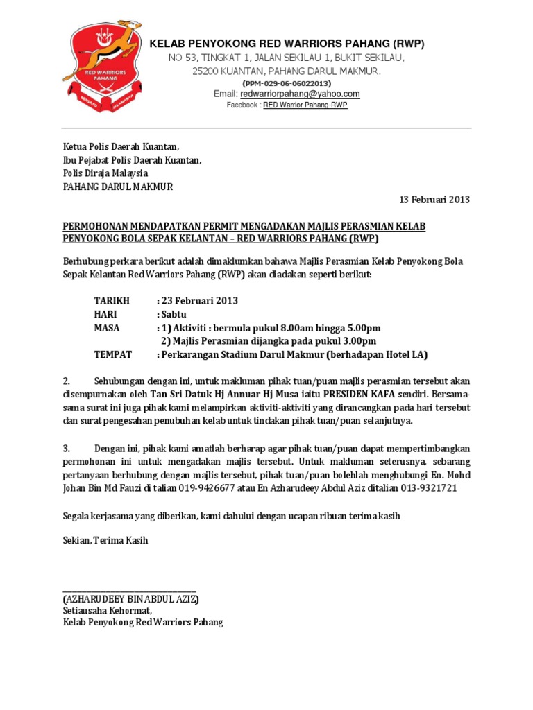 Related : Contoh Surat Permohonan Permit / Doc Contoh Surat Sokongan Khamarudin Ismail Academia Edu - Mengadakan acara atau kegiatan memang tidak lengkap rasanya jika tidak ada narasumber..